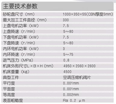 本機(jī)床采用立式布局,主機(jī)床身采用鑄鐵構(gòu)件,減少加工時振動,確保加工精度。上、下研磨盤及內(nèi)環(huán)均采用交流變頻無級調(diào)速,保證了研磨各種材料和各種形狀工件的工藝轉(zhuǎn)速。氣動控制實(shí)現(xiàn)上研磨盤擺入、擺出和上升、下降動作,便于操作。采用預(yù)壓、主壓、后壓三階段壓力控制,壓力值可任意調(diào)整并可自動轉(zhuǎn)換。